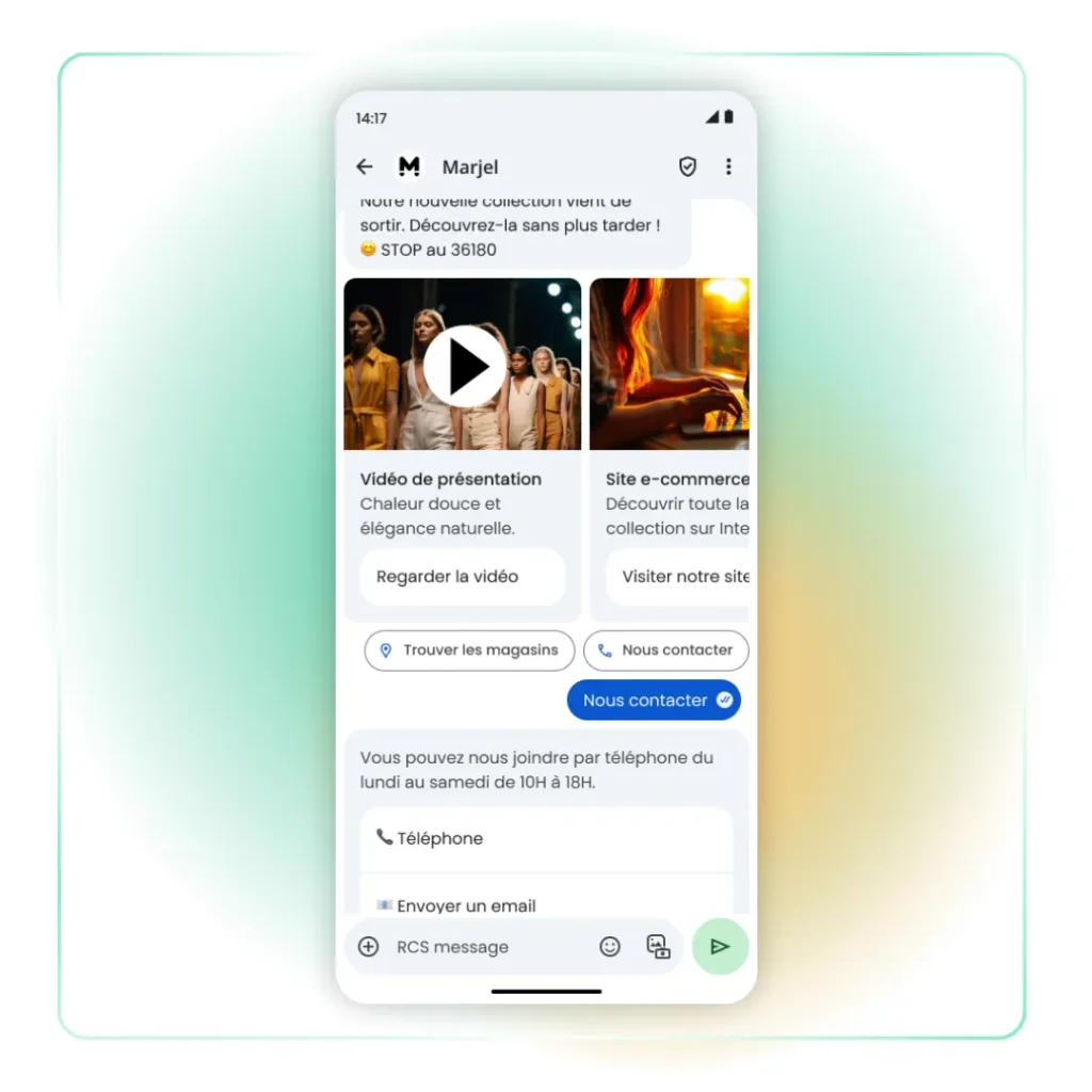 Pour les messages marketing, la logique est identique. Une offre flash très courte peut rester en SMS, surtout si l’objectif est la rapidité. Une campagne qui doit installer de la confiance, présenter plusieurs produits, ou orienter vers une action précise profite du RCS. Visuels, carrousels et boutons renforcent la compréhension et accélèrent la décision.
